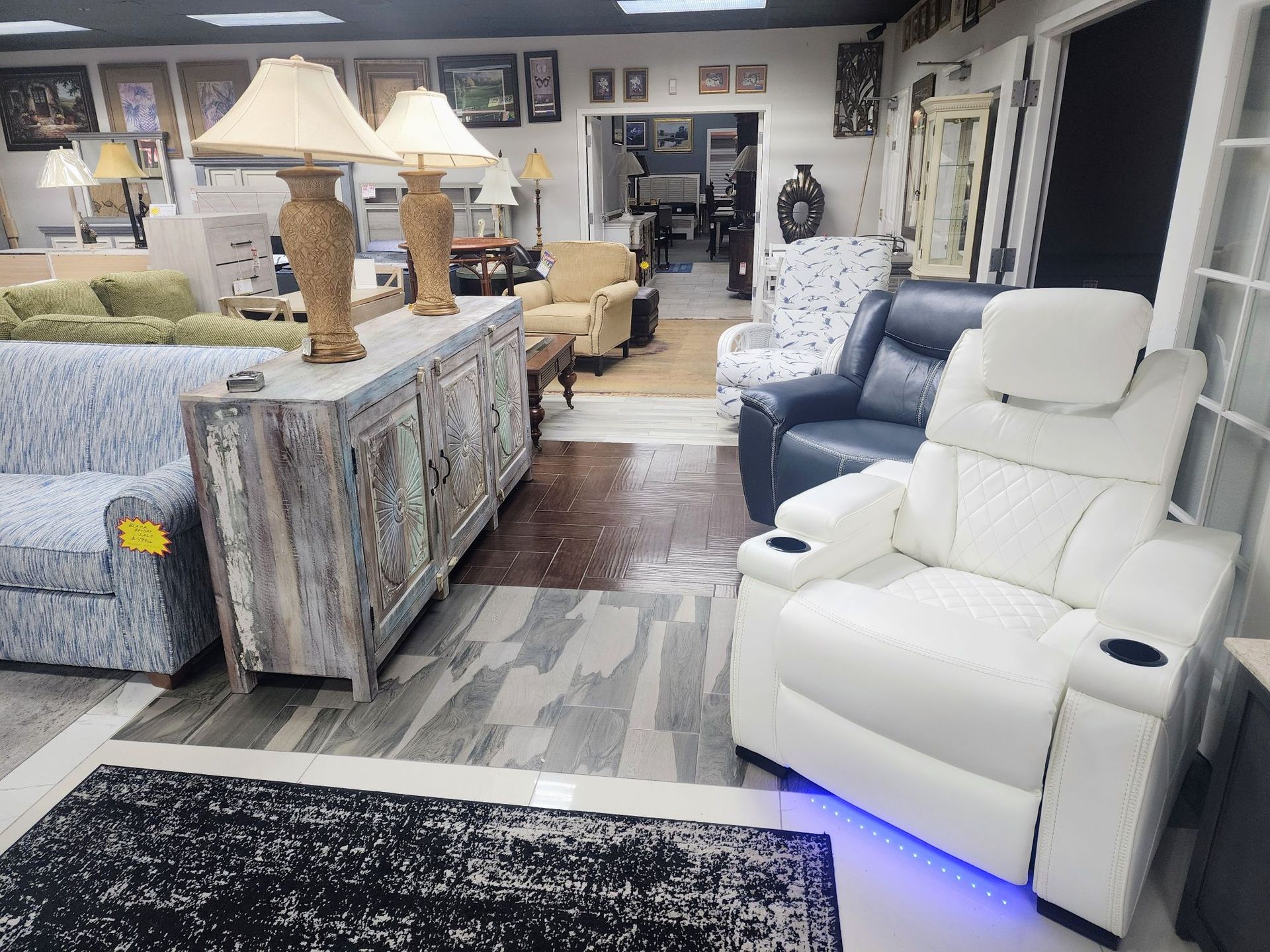 Another common remark is, "I wish I knew you were here!" Our location is somewhat hidden. Our S Tamiami Trail location is in the same plaza with Sky Zone Trampoline Park & Gulf Coast Coin & Jewelry. Directlly across from the Lexus dealership in S Ft. Myers. Featuring a 10,000 sq. ft. air-conditioned showroom. Yes AC. As our previous.location for 30.years had no AC.& was a metal warehouse with limited parking.