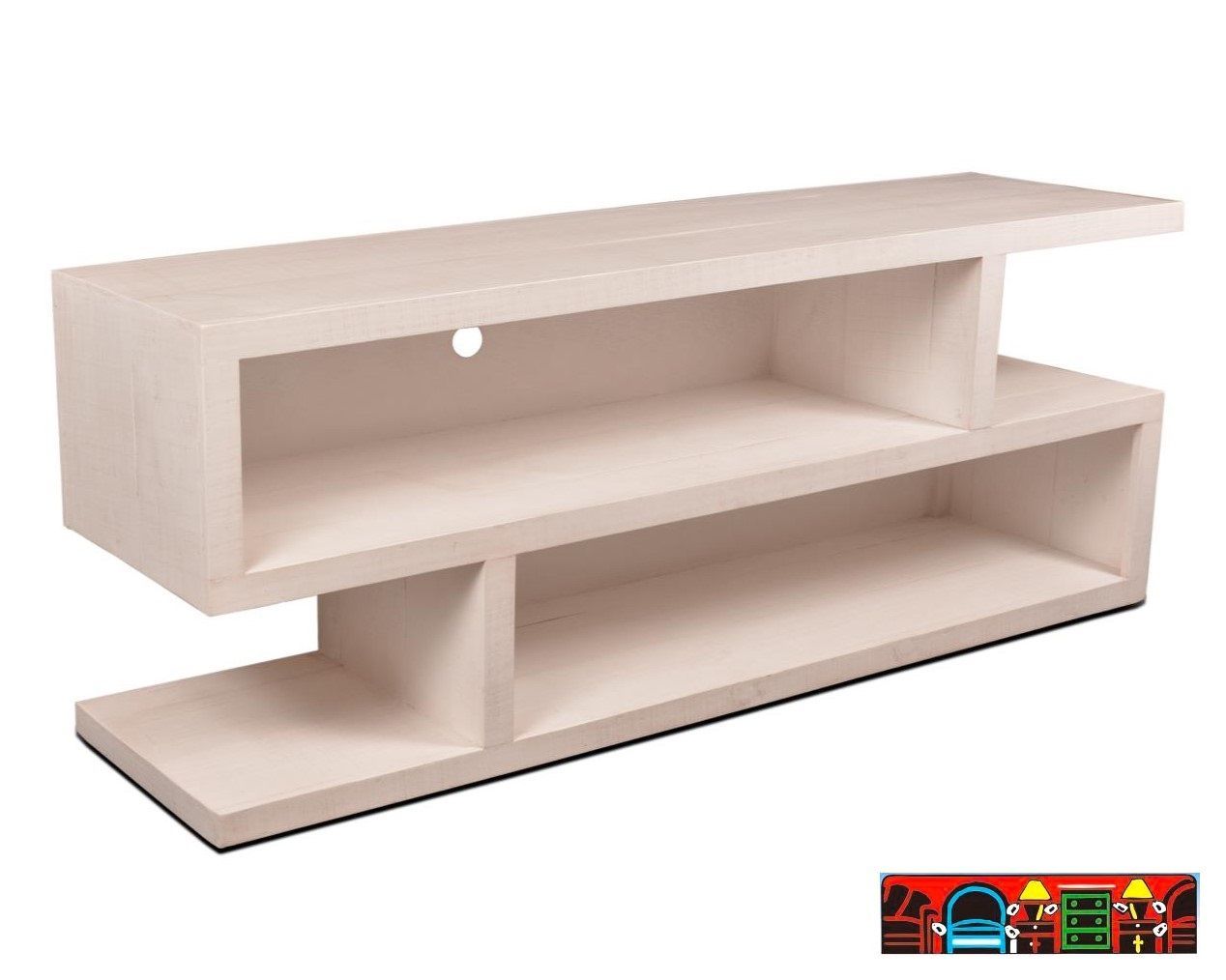 Introducing the pinnacle of contemporary living room elegance: a state-of-the-art entertainment console! Crafted from the finest solid wood, this piece boasts a pristine white-wood finish that exudes sophistication. Its unique stacked and offset design is not only eye-catching but also an embodiment of modern design principles. Elevate your space with this exquisite console!"