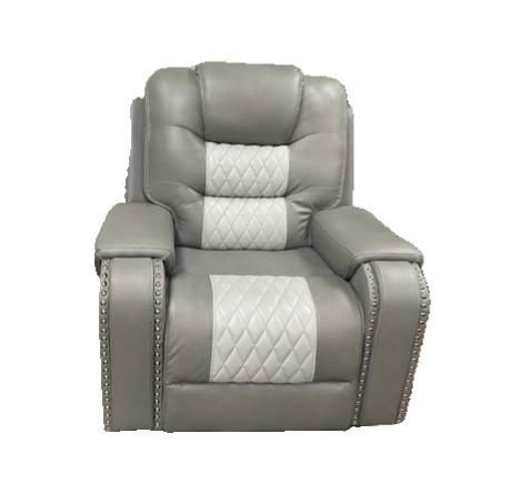 Experience the ultimate comfort and style with our push-back wing-back recliner! Featuring plush rolled arms, elegant exposed wood legs, and chic nail head accents, all wrapped in a sophisticated grey shades fabric. It's the perfect addition to any room that calls for a touch of class and a cozy spot to relax."