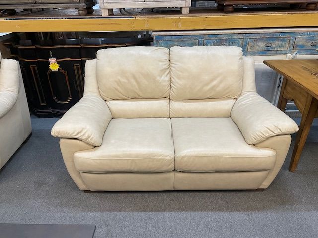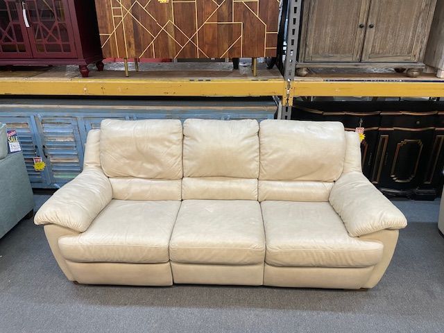 Dive into comfort with our luxurious sofa! Featuring attached pillow-backs that cradle you in softness, a sleek 2 seat cushion design for a modern touch, cozy pillow arms that are perfect for lounging, and stylish flat sides resting on dark brown feet for a grounded look. Wrapped in pristine Ivory Top grain cow leather that caresses your body, it's a piece that not only stands out but also invites you to relax in style!".