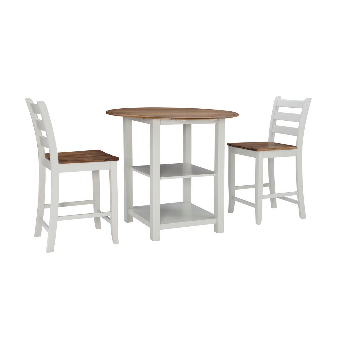 Description: 'Monroe' small aluminum, wood & rope round end table and 2 chairs with grey cushions